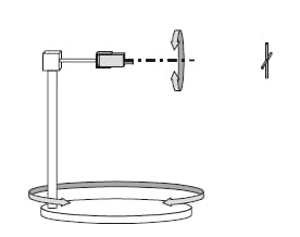 使用圓錐切法的測試系統(tǒng)被稱為分布軸系統(tǒng),兩個旋轉軸相互獨立,測量天線圍繞Theta軸轉動,EUT圍繞Phi軸轉動。測量天線在移動臺上方和下方多個位置依次進行測量。
