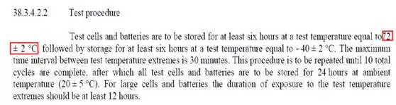 變化二:在38.3.4.5.2章節(jié)中,變更了T5測(cè)試項(xiàng)的環(huán)境溫度要求