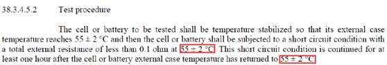修訂前,標(biāo)準(zhǔn)中對(duì)外短路的環(huán)境要求是55±2℃,而修訂之后對(duì)溫度的要求變更為57±4℃,溫度范圍值更廣,要求更為嚴(yán)格。