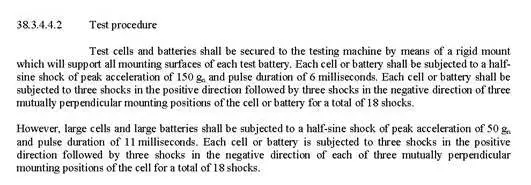 在修訂前加速度峰值是固定值:小電池150gn,大電池50gn。而新標(biāo)準(zhǔn)則是制定了公式,根據(jù)電池的重量來(lái)對(duì)應(yīng)算出加速度并相對(duì)應(yīng)的與150gn和50gn做對(duì)比后采用相應(yīng)的加速度峰值。