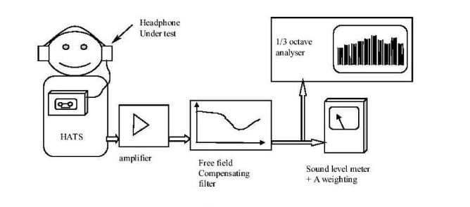 1、使用一個帶標(biāo)準(zhǔn)測試耳的仿真人工頭(HATS)在標(biāo)準(zhǔn)的聲學(xué)試驗室內(nèi)進(jìn)行測試,測試信號有嚴(yán)格規(guī)定,必須按照標(biāo)準(zhǔn)IEC60268-1,對應(yīng)于不同的播放設(shè)備,測試信號應(yīng)根據(jù)標(biāo)準(zhǔn)里規(guī)定的相應(yīng)測試記錄電平進(jìn)行制作。在測試時,測試設(shè)備的降噪系統(tǒng)必須關(guān)閉,音量調(diào)節(jié)到最大,音調(diào)調(diào)節(jié)到使耳機(jī)達(dá)到最大聲壓的位置,耳機(jī)裝置于標(biāo)準(zhǔn)人工耳上,人工耳內(nèi)裝置麥克風(fēng)以收集耳機(jī)所發(fā)出的聲音,以音頻分析儀分析紀(jì)錄各音頻的最大聲壓值(LAeq)。測試將重復(fù)五次,每次讀數(shù)需要測試至少30秒,最大聲壓級的測試結(jié)果將取這五次的平均值。而對于不帶耳機(jī)的單純的播放設(shè)備,則需測量并評估其最大輸出電壓。