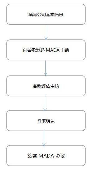 申請(qǐng)MADA協(xié)議的流程很簡(jiǎn)單,只需要填二個(gè)表格,在表格內(nèi)容中,廠商需要描述清楚自己的工廠規(guī)模,人數(shù),年出貨量等信息,內(nèi)容必須真實(shí)有效,填好之后提交谷歌開(kāi)始申請(qǐng)MADA協(xié)議。谷歌會(huì)在申請(qǐng)過(guò)程中對(duì)不夠清楚的部分再跟廠商確認(rèn)。整個(gè)周期沒(méi)有辦法確定具體時(shí)間。一般情況會(huì)需要8-12周。