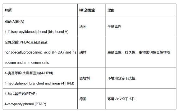 2016年12月19日,歐盟成員國委員會(MSC)一致同意將4種物質(zhì): 雙酚A(BPA)、全氟癸酸(PFDA)、4-叔戊基苯酚(PTAP)、4-庚基苯酚,支鏈和直鏈(4-HPbl)定為高度關(guān)注物質(zhì)(SVHC)。另外,大多數(shù)的成員國也同意將環(huán)境內(nèi)分泌干擾物4-叔丁基苯酚(PTBP)和呼吸致敏物偏苯三酸酐(TMA)定為高度關(guān)注物。