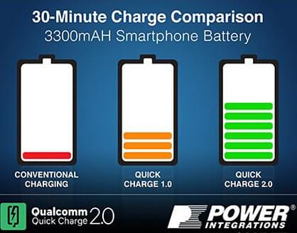 高通Quick Charge 2.0:通過(guò)調(diào)整電壓和電流的方法來(lái)提高充電功率, 主要使用高通驍龍800系列芯片。