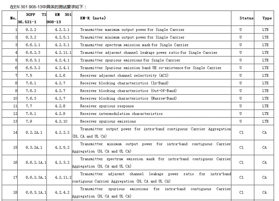 LTE射頻測試遵循的CE認證標(biāo)準: