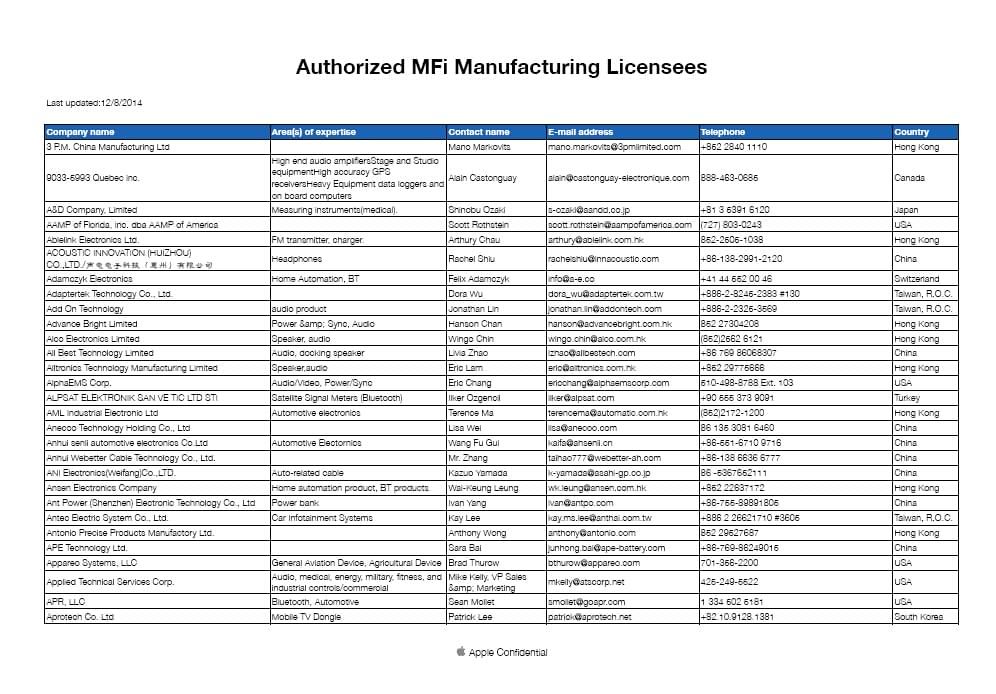 然后,找到查詢通過蘋果MFI認(rèn)證的企業(yè)名單,如圖: