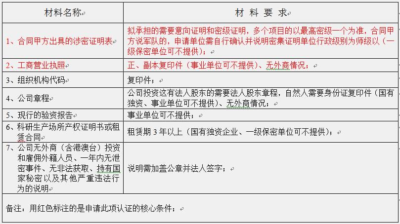 申請“保密”認(rèn)證準(zhǔn)備材料